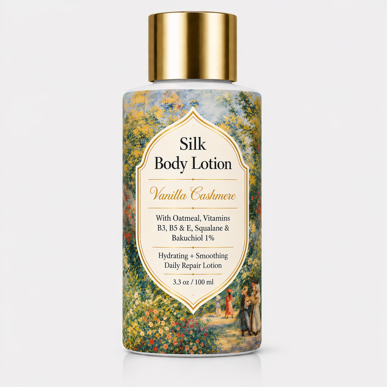 Why We Chose It: We chose this artwork for its softness, light, and quiet elegance. It gives the label a fresh, delicate feeling that fits a silk body lotion, while the glowing garden setting suggests smoothness, comfort, and healthy-looking skin. It feels refined and feminine without being heavy, which makes it a strong match for a body product meant to feel light, silky, and soothing.